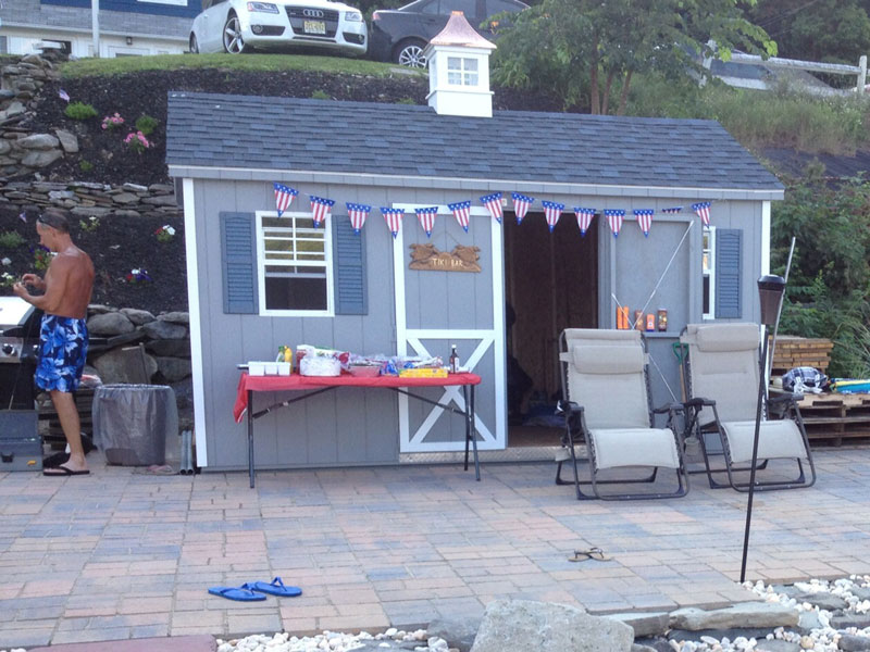 So we started work last spring, knocked down the old boat house, cleared the area, and put in a beautiful patio. Then in late June had our new boat house delivered from Backyard and Beyond.