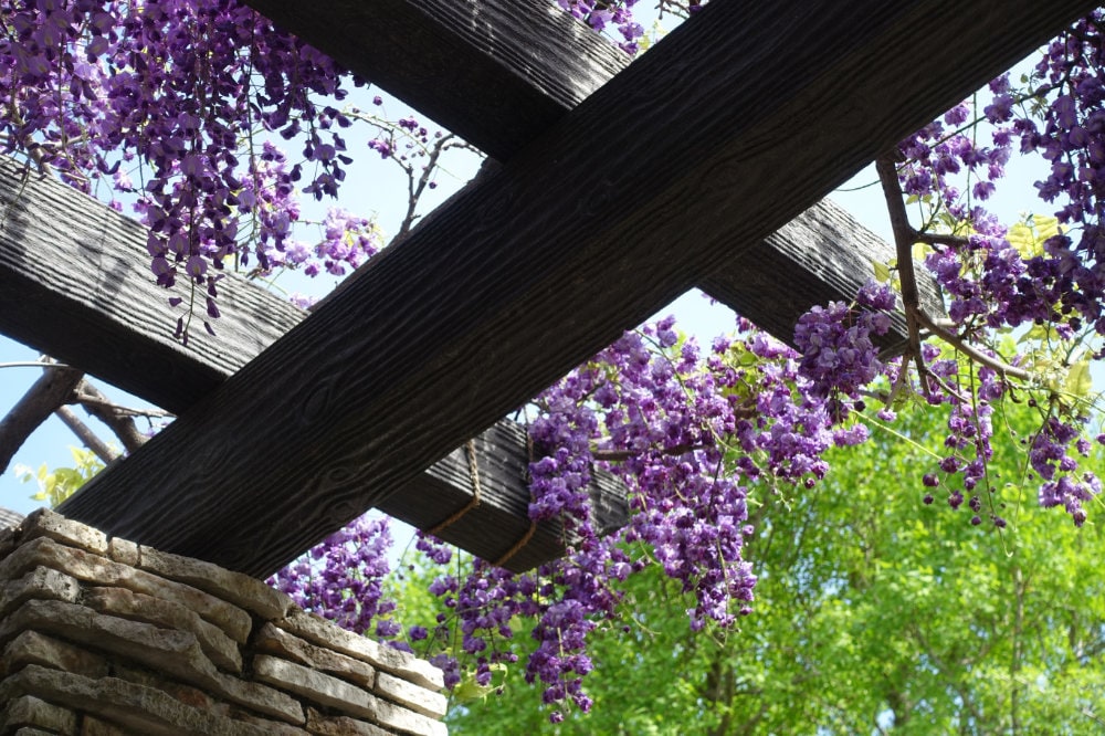 When choosing a pergola to house wisteria vines, you need to ensure you invest in a sturdy, handmade pergola that will not only withstand the wisteria branches, but withstand harsh weather.