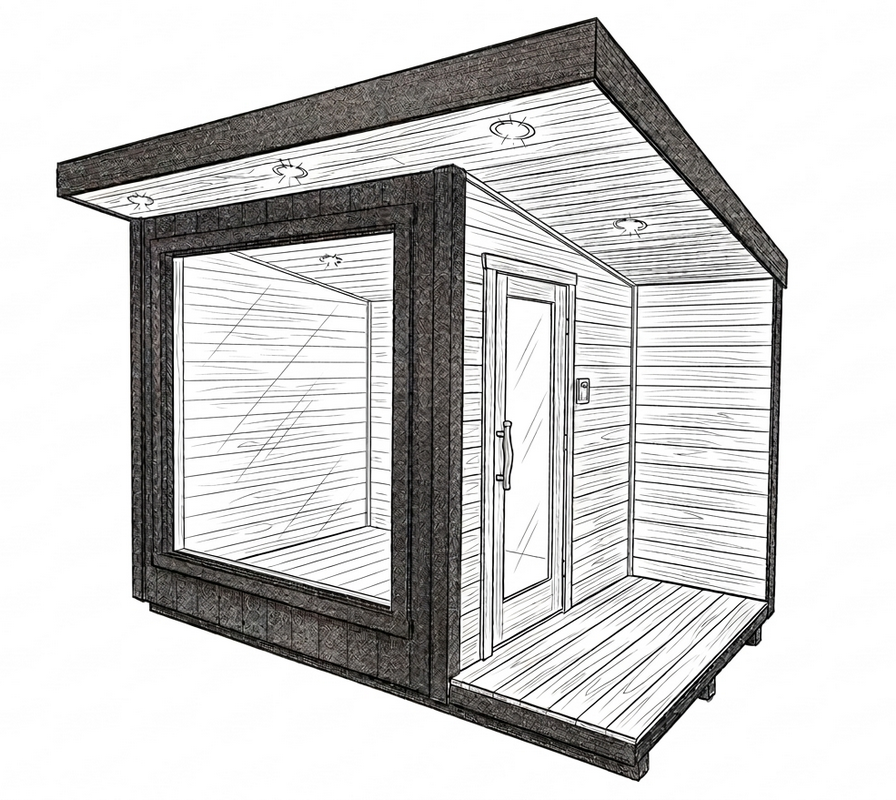 Upgrade your outdoor wellness space with a fully customizable pre-built sauna designed to fit your lifestyle and backyard aesthetic. Crafted with beautiful cedar throughout, each sauna features a rich, natural interior that enhances both durability and aroma. The cedar deck adds a refined finishing touch while providing a sturdy, weather-resistant entry point. Cedar’s natural resistance to moisture and decay ensures lasting performance in outdoor environments. Our pre-built saunas are delivered ready for simple installation, saving you time while ensuring professional-grade construction. From family relaxation sessions to personal wellness retreats, this sauna is designed to elevate your outdoor living space with both beauty and performance.Custom Built Sauna Features