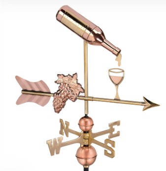 Our Wine Bottle with Grapes & Glass Weathervane is perfect for showing off your style and love for the great outdoors. Made from pure copper, it shines with beauty and durability, making it the perfect addition to your outdoor space. With intricate details and a timeless design, this weathervane will have everyone talking about your garden. Picture it standing proudly in the wind, like a beacon of style and grace. So, bring home this breathtaking weathervane today and let your outdoor area bask in its beauty!